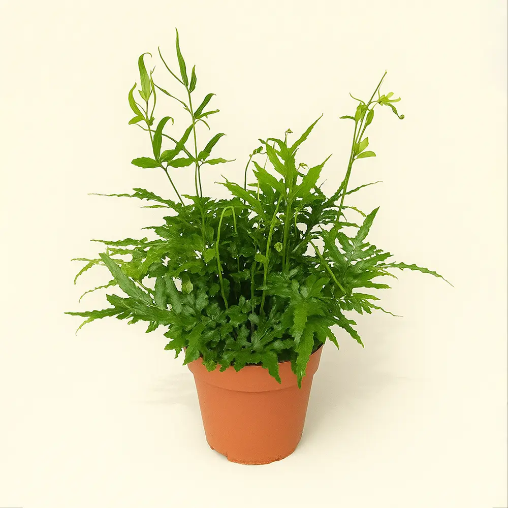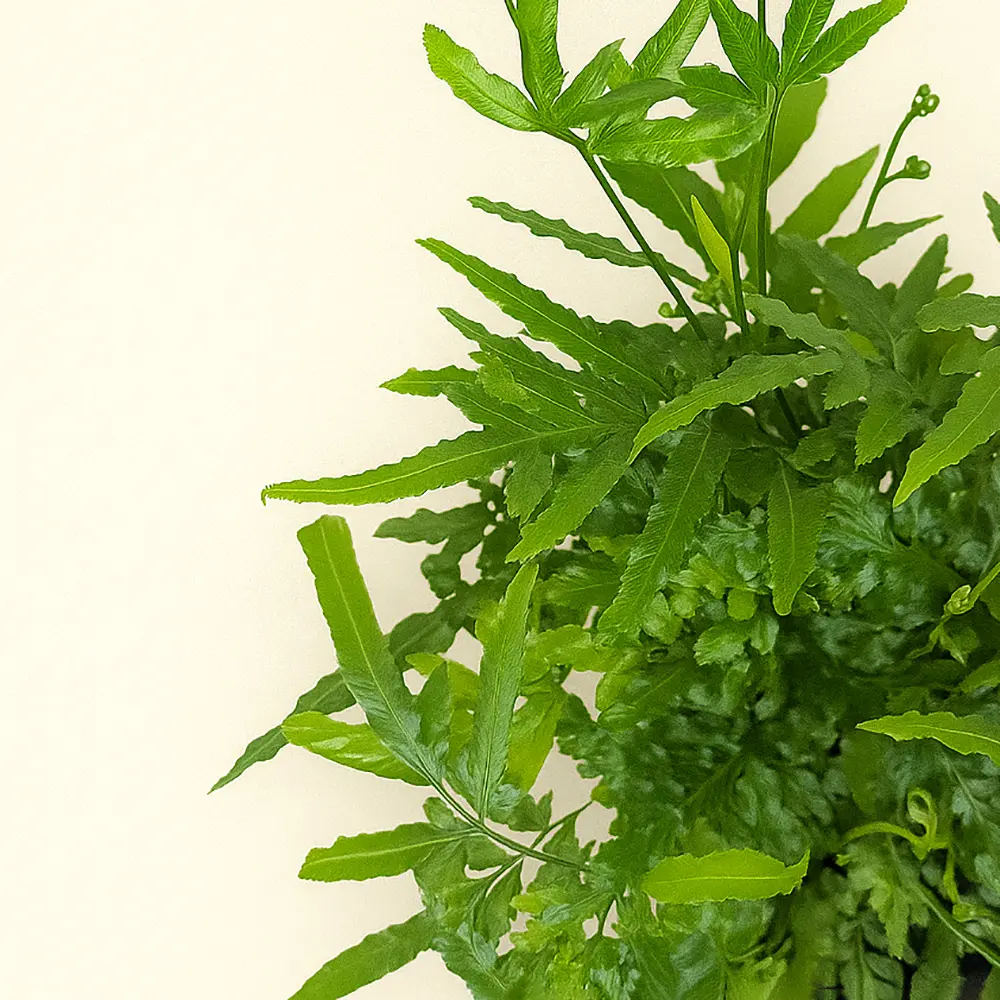 Уход за Птерисом ‘Эвергрин’ прост: он предпочитает рассеянный свет, регулярное опрыскивание и умеренный полив. Этот папоротник для дома прекрасно очищает воздух и создаёт ощущение свежести, делая интерьер уютным и природным.
